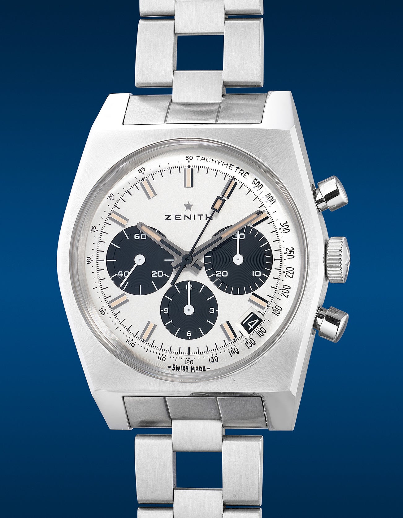 The present Chronomaster is a revival of the original ref. A384, the exact El Primero Chronograph worn by Daisuke Jigen, Lupin’s partner in crime and deuteragonist in this seminal series. Playing on nostalgia, the warm white lacquered dial is paired with contrasting black sub-registers to create a vintage aesthetic. In correspondence to the 1970s El Primero watches, the configuration is housed in a tonneau-shaped case with a Gay Frères inspired ladder bracelet, made in stainless steel with brush finishes.