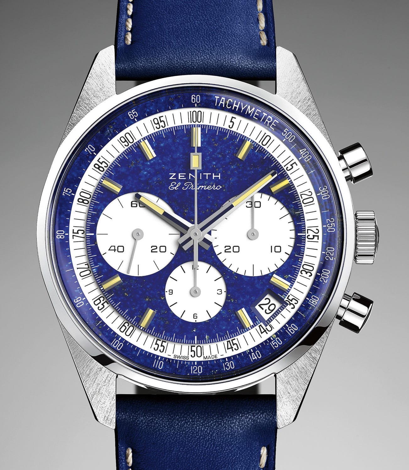 The present watch will be the only watch Zenith will make in platinum and the only watch that will have a lapis lazuli dial making it not only unique in this combination but in any combination.