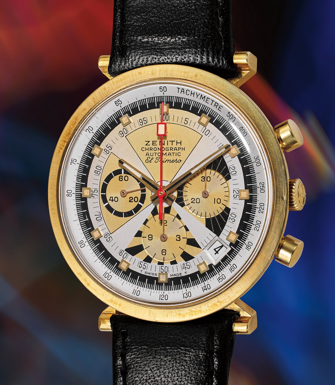 Watch journalism site SJX Watches reinterpreted the G383 in 2021 with a luminous dial cased in the 38mm Chronomaster case – a testament to the timeless appeal of the “Poker Chip”. The present lot is the first instance of Phillips offering the original model from 1970, a wild and wonderful example of 1970s audacity.
