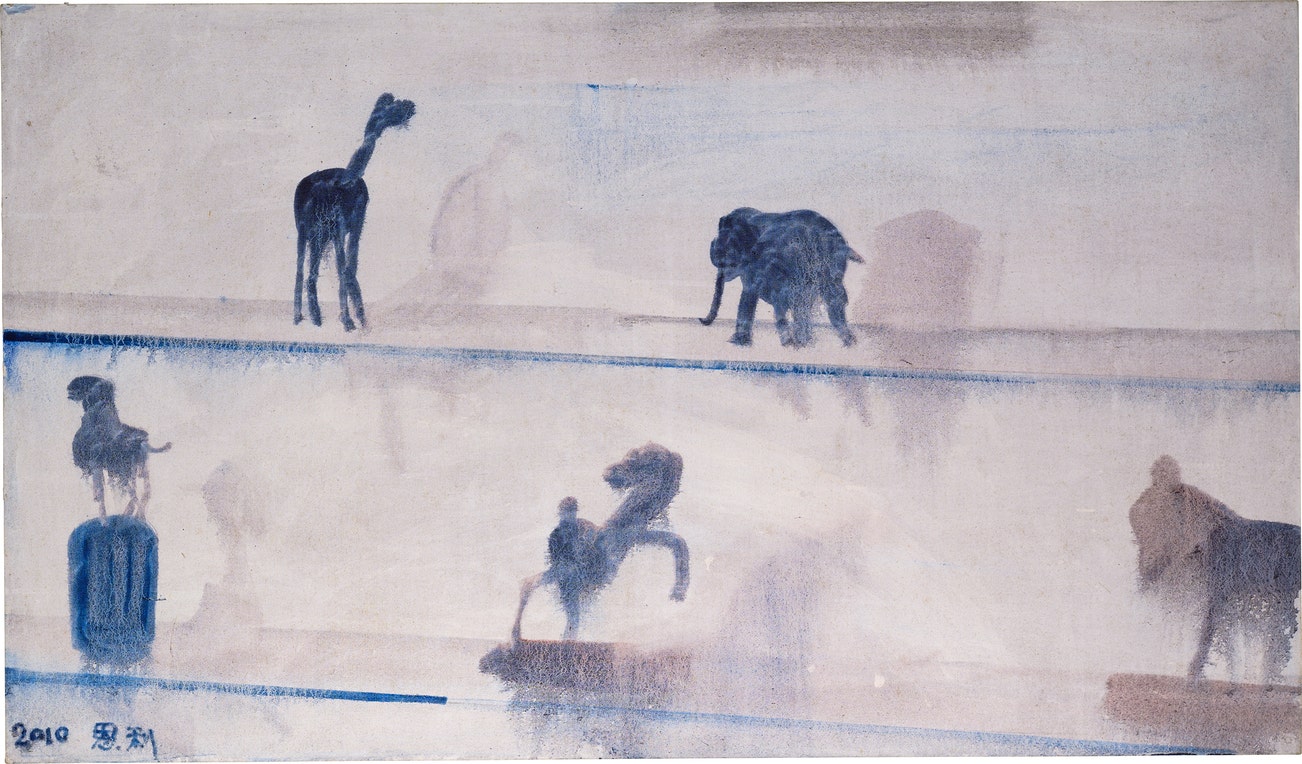 signed and dated ‘2010 Enli [in Chinese]' lower left; further signed, titled and dated ‘"Animal" [in Chinese] 2010 January Zhang Enli [in Chinese]’ on the reverse