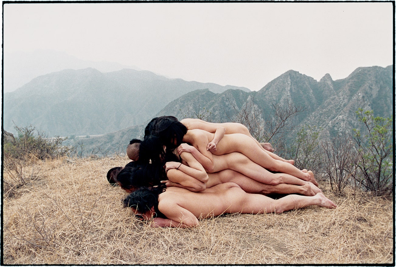titled, inscribed, numbered and dated [in Mandarin] "To Add One Meter to an Anonymous Mountain 1995 Beijing PP" on a label affixed to the reverse of the backing board