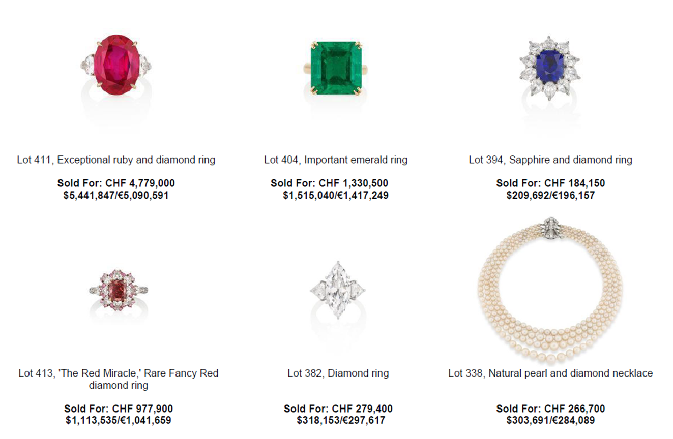 Star Lots Included an Exceptional Ruby and Diamond Ring, Which Sold for CHF 4,779,000/ US$5,441,847, as well as an Important Emerald Ring, Which Sold for CHF 1,330,500/ US $1,515,040