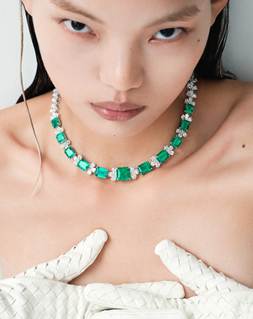 emerald and diamond ring, prized for its intense green hue, outstanding brilliance, and exceptional clarity that is nearly eye-clean—a true marvel in today’s market, where untreated emeralds of such caliber are increasingly scarce. Equally breathtaking is a ‘Colombian Muzo’ emerald and diamond necklace, adorned with eleven impeccably matched emeralds, totaling 45.94-carat, sourced from the legendary Muzo mine. This masterpiece exemplifies extraordinary craftsmanship and highlights the enduring allure of Colombian emeralds among discerning collectors.