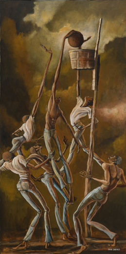Phillips is also proud to present two works by Ernie Barnes, owned by Golden Globe-nominated actor Richard Roundtree, an icon of American cinema, most notable for his role as SHAFT. Despite being neighbors in 1970s Los Angeles, Roundtree discovered Barnes’ artistic endeavors after Sammy Davis Jr. and Charlton Heston purchased his artworks. When Roundtree learned that Barnes lived just four blocks away, he walked to his home and met with him. As an actor who desired to explore Black experiences on screen, it was important for Rountree to see these artworks. They visually captured life, people, and places he had experienced. The hues used in both works are reflective of primary colors often found in Black American films during the 1970s. Deep browns, yellows, tans and hints of “blue-black,” were cultural markers that signified the wide range of skin color and complexion found in Black America. Evidenced in both Untitled (Basketball Players) and My Man, Barnes’ unique ability to elevate the everyday to the extraordinary have captivated collectors across the world, with the market for his work having reached new heights