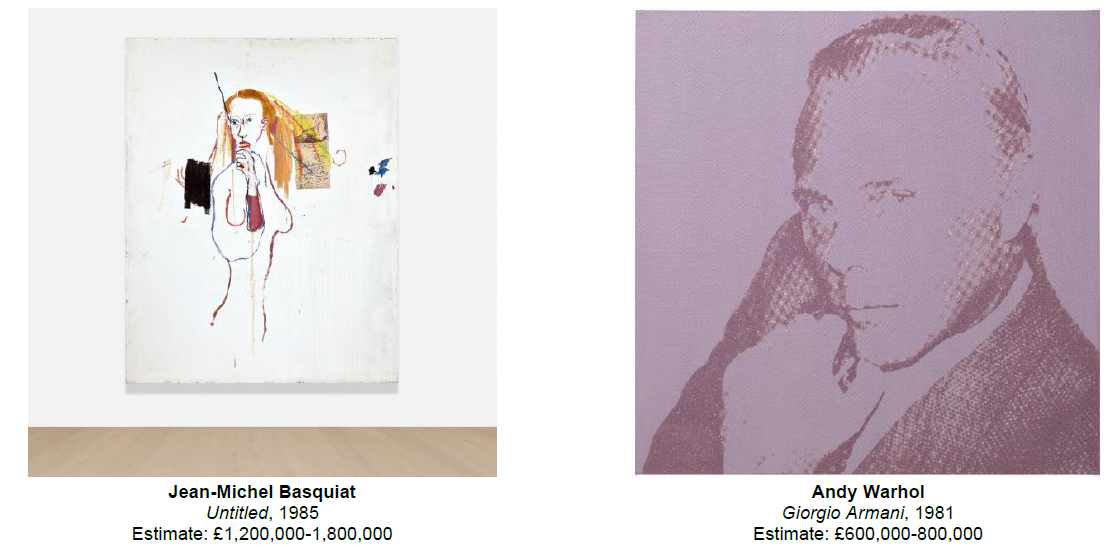 Jean-Michel Basquiat, Untitled (Pestus), 1982 Estimate: £2,000,000-3,000,000 LONDON – 7 OCTOBER 2025 – Phillips unveils highlights of the Modern & Contemporary Art auctions in London on 16 and 18 October. Leading the Evening Sale is Jean-Michel Basquiat’s 1982 work on paper Untitled (Pestus), alongside a rare example of the artist’s representations of women represented by a 1985 work on canvas. The spotlight then falls on Andy Warhol’s diamond dust portrait of fashion icon Giorgio Armani, and Banksy’s 2005 Kate Moss, two works that explore the exchanges between glamour, art, and fashion. Further works by British stars include Jadé Fadojutimi and Flora Yukhnovich, and rising contemporary voices Sasha Gordon and Emma McIntyre, alongside a jewel-like portrait by Steven Shearer. The preview exhibition is open at Phillips’ Berkeley Square galleries from 9-18 October, remaining on view throughout both sales: the Evening Sale (16 October 5pm), and the Day Sale (18 October 1pm). Olivia Thornton, Phillips’ Head of Modern & Contemporary Art, Europe, said, “Frieze Week is a moment when London truly comes alive with art, and we are excited to be part of that energy. This season, we are proud to offer a sale that reflects the vibrancy of contemporary collecting, bringing together key names, emerging voices, and works that challenge and inspire.” Leading the sale, Untitled (Pestus), 1982, emerges from what is widely regarded as Basquiat’s breakthrough year, a time when his raw energy and bold visual language blasted onto the New York art scene. In this work, he fuses iconic motifs including his three-pointed crown and cryptic textual elements with insightful social critique. A further highlight is a rare example of Basquiat’s depiction of a female nude. Untitled. Executed in 1985, at a pivotal moment in the artist’s practice where he turned his attention more closely to his intimate circle, the painting weaves together multiple art-historical and personal references. Basquiat’s deep engagement with classical antiquity is captured here, invoking the figure of Venus as both an aesthetic ideal and a coded personal emblem. Warhol’s 1981 portrait of Giorgio Armani is one of only two known versions to include diamond dust. Based on Polaroids taken when the two first met the year before, the shimmering glow of the surface evokes the flashing bulbs of press cameras and the glamour of 1980s high fashion. Warhol long admired Armani’s elegance and saw in his name the embodiment of luxury; Armani in turn held deep respect for Warhol’s commitment to his work revering him as the greatest artist of his generation.