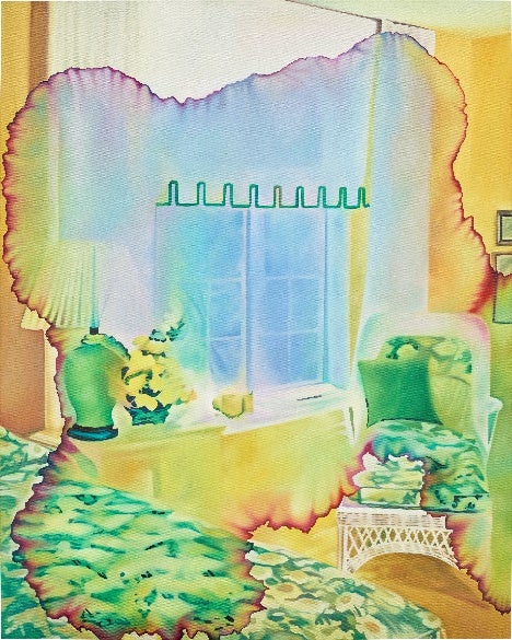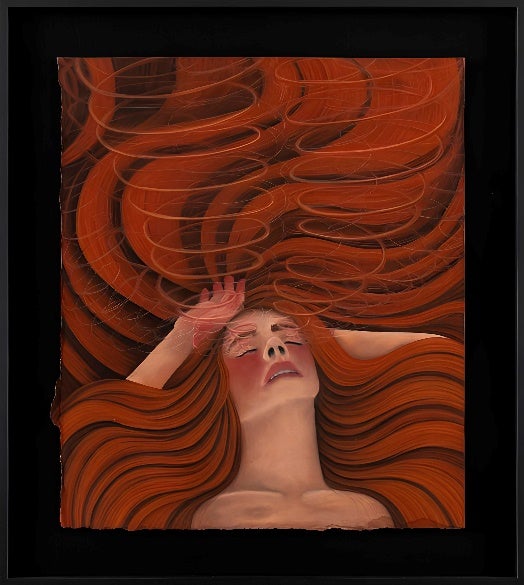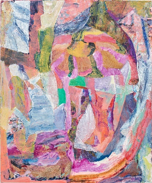 In true New Now fashion, this sale celebrates works by rising talents. Among them is Joseph Yaeger, who made a strong auction debut in the October London Modern & Contemporary Art Evening sale. A further standout is Los Angeles-born artist Ariana Papademetropoulos, whose ethereal, dreamlike paintings reinterpret traditional iconography, exposing the artificial within the everyday. Her painting Glass Slipper, first exhibited in Sunken Garden at London’s Soft Opening gallery in 2018, captures an idyllic Californian interior veiled in a warm, distorted haze. Through her “watermark paintings,” which mimic water spills on found images, Papademetropoulos brings an organic, almost psychedelic quality to domestic scenes.