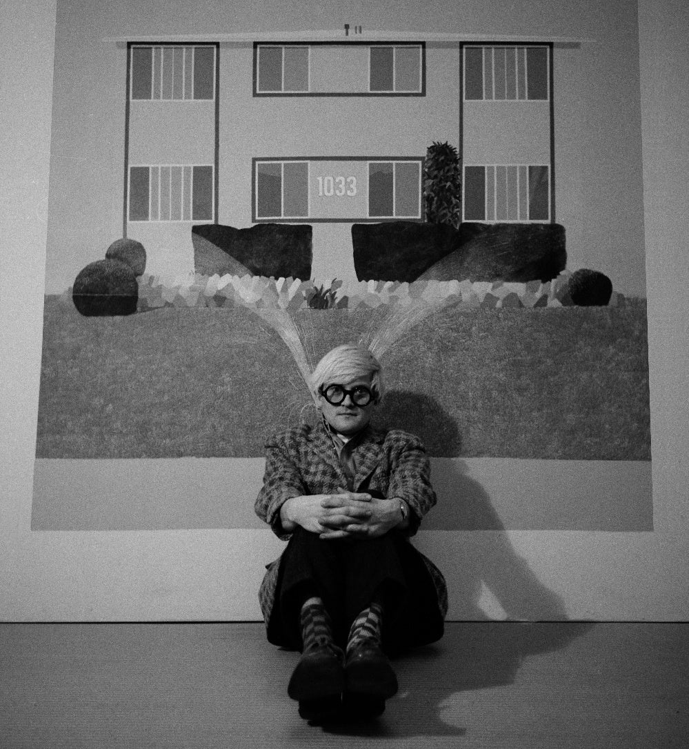 David Hockney with the present work in his North Kensington studio, photographed by Jorge Lewinski, 1968. National Portrait Gallery, London, Image: © The Lewinski Archive at Chatsworth / Bridgeman Images
