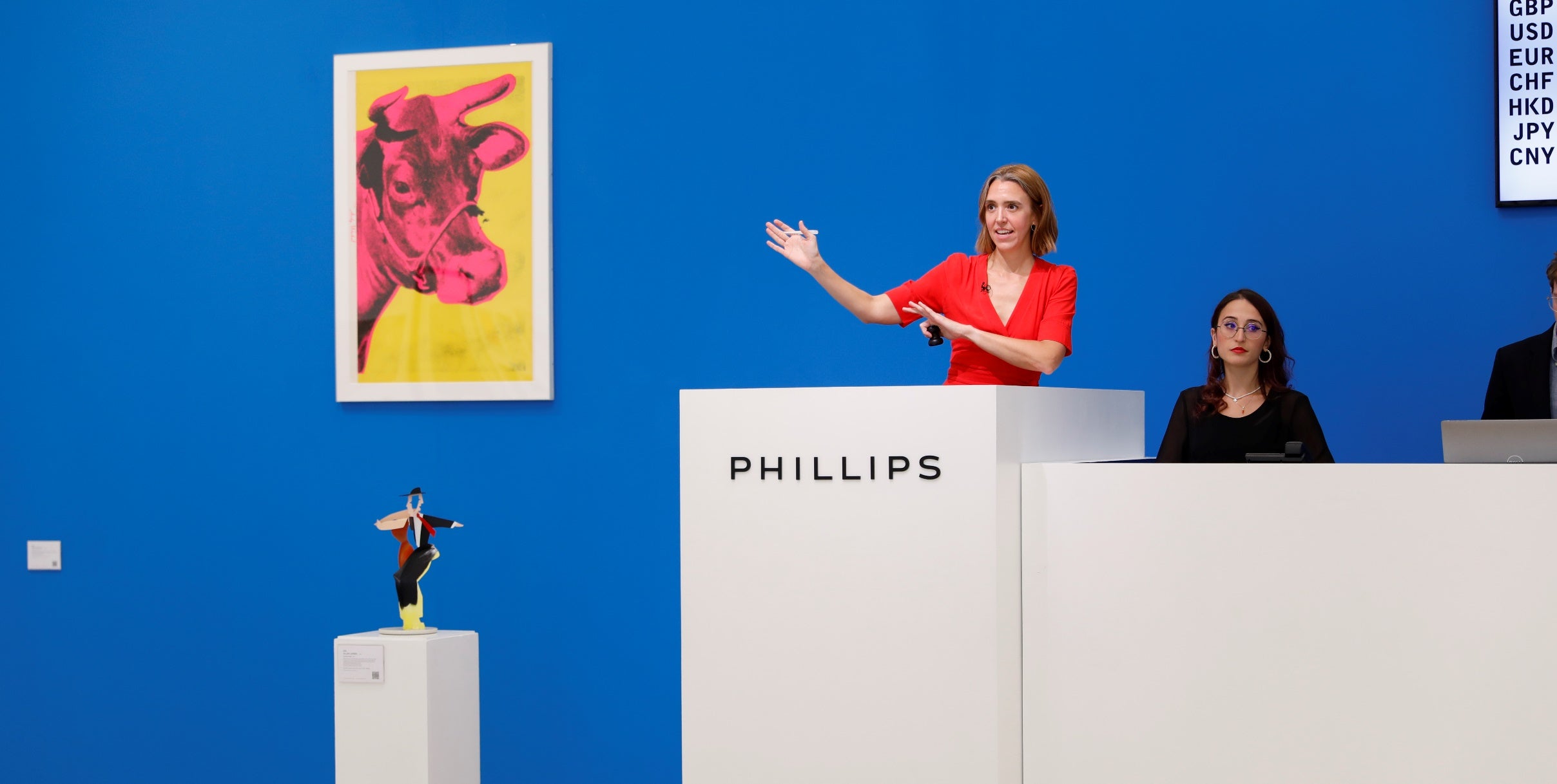 Rebecca Tooby-Desmond auctioneering during the David Hockney sale
