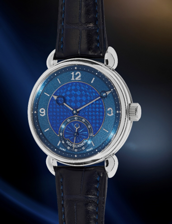 VOUTILAINEN, A probably unique and extremely attractive platinum wristwatch with two-tone blue handmade “optical illusion” dial, subsidiary seconds, certificate, and presentation box, circa 2020 Estimate: $70,000-140,000 After spending a decade restoring the finest horological creations of the past three centuries, Kari Voutilainen became a rising star in the watchmaking scene in the early 2000s with his unique piece decimal minute repeater, chiming every ten minutes rather than the quarter hours. These first examples were soon followed by his Observatoire and Vingt-8 models with movement finishing of the highest level.