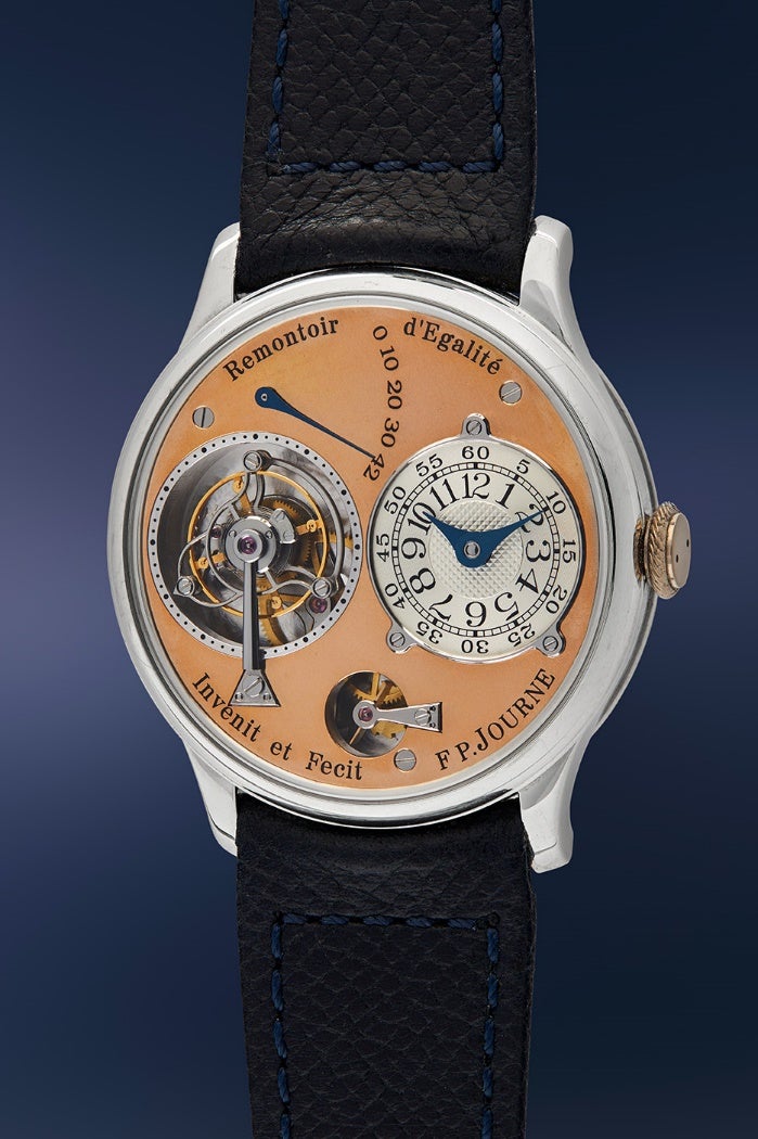 F.P. Journe, Tourbillon Souverain in Platinum with Salmon Dial, circa 1999 Estimate: $300,000-600,000