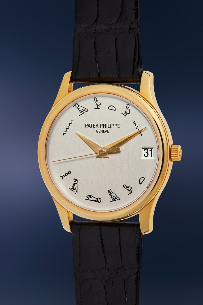 An Historically Important Patek Philippe Ref. 3998J with Newly Deciphered Egyptian Hieroglyph Dial, Specially Made for Renowned Photographer Helmut Newton