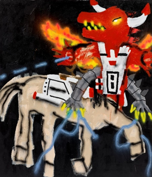 Young contemporary artist and auction newcomer Julian Pace makes his auction debut with Kanye, painted in June 2021. Currently based in Los Angeles, rising star and self-taught artist Pace interrogates the play on absurd yet deep-rooted themes of celebrity worship, identity, and self-absorption in contemporary society through grand and imposing large-scale portraiture. Kanye portrays the rapper and celebrity Kanye West, rendered through Pace’s characteristically exaggerated proportions, bold angularity, and highly textured application of paint. Included in his recent exhibition Julian Pace: Some Paintings held at Simchowitz Gallery in October 2021, Pace’s portrait of the iconic American celebrity captures the graphic quality of his practice and the intersection of the traditional conventions of portraiture and mass media culture.