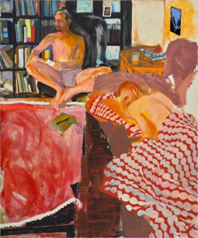 Following his auction debut in Phillips’ London Evening Sale earlier this year, is Brooklyn-based artist Doron Langberg’s 2018 painting Nir and Zach. Included in the group exhibition ZIG ZAG ZIG with New York’s DC Moore Gallery in 2018, the present work is a tender scene of domestic intimacy. Depicted in a moment of calm repose, the two figures find themselves comfortably alone, Nir absorbed by the book on his lap as Zach sleeps on a nearby sofa. Soaked in warm washes of rich colour, the painting’s inviting glow blurs the boundaries between material reality and memory, charging the work with emotional and psychological depth as the boundaries between interiority and environment dissolve.