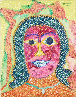 Further Leading Highlights Undoubtedly one of the most iconic motifs of Yayoi Kusama’s incredible 70-year career, the polka-dot covered pumpkin combines the artist’s compulsive focus on infinity and repetition with a highly personal and self-reflective dimension. Kusama’s brilliantly patterned gourds are so closely connected to the artist that they function as a universal signature of the artist. Rendered in vibrant hues of rich, golden yellow and deep black, the pumpkin is joyously misshapen here, crowned with an unusual blue stalk and set against a background of tessellating green geometric shapes that draw immediate connections with the artist’s celebrated Infinity Net series.