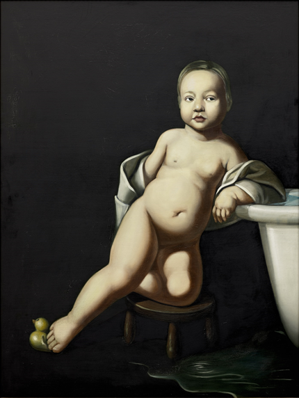 Recently announced as the youngest painter to join the roster at Gagosian Gallery, Canadian artist Anna Weyant has been garnering critical recognition since her first solo exhibition at 56 Henry in 2019, Welcome to the Dollhouse. Taking its title from Todd Solondz’s 1995 film of teenage angst and ritual humiliation, Welcome to the Dollhouse used the children’s toy as a device to explore what Weyant has described as the ‘low-stakes trauma’ of girlhood, her paintings like compartmentalised vignettes staged using her cast of doll-like characters serving as actors and avatars in her tragicomic narratives. Executed in the same year as this breakthrough exhibition, Bath Time shares in these themes, developing the rich, dark palette offset by luminous porcelain tones that have become associated with Weyant’s precisely rendered scenes of narrative disquiet.