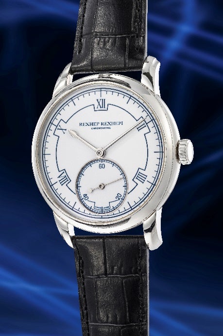 Rexhep Rexhepi is one of the most exciting independent watchmakers to emerge in the past few years, garnering an almost cult-like following. Thanks to the immense success of his 2018 Chronomètre Contemporain, he became a notable figure in the industry. The Chronomètre Contemporain was his first round watch as well as his first watch to feature his name, Rexhep Rexhepi, on the dial instead of that of his brand, Akrivia. The model was made in either 18k pink gold with black enamel dial, or in platinum with a white enamel dial, each version limited to just 25 pieces. After Phillips successfully sold two different examples of the pink gold series last year, we’re proud to offer the first platinum example of the Chronomètre Contemporain to come to auction.