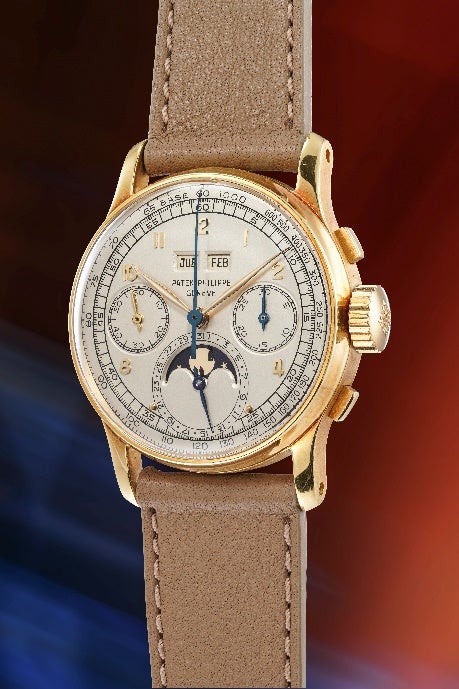 Additional Patek Philippe highlights in the auction include a 1951 Patek Philippe Perpetual Calendar Chronograph Ref. 1518 in 18k yellow gold, a 2015 Patek Philippe Chronograph ref. 5070 in 18k white gold with salmon dial from the 2015 Watch Art Grand Exhibition at London's Saatchi Gallery of which only five are known (estimate CHF 250,000-500,000), and a freshly unsealed Patek Philippe Split-Seconds Chronograph ref. 5950A (estimate CHF 220,000-440,000).