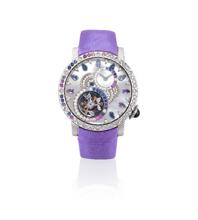 White Gold, Sapphire, Amethyst and Diamond Wristwatch, ‘Tourbillon