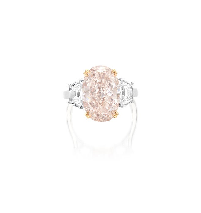 Also on offer is a 5.41-carat fancy orangy pink diamond and diamond ring. In the past decade, the popularity of pink diamonds has soared phenomenally due to its enigmatic charm, even more so when the Argyle Mine in western Australia, which produced over 90% of the world’s pink diamonds, announced its closure in end of 2020. Now that there is no discovery of new mines, or any comparable ones in existence, it is only logical that the prices of pink diamonds continue to increase. Fancy pink diamonds of over 2 carats are highly collectible, and a specimen like the present lot which weighs more than 5 carats is the ultimate dream of any collector.