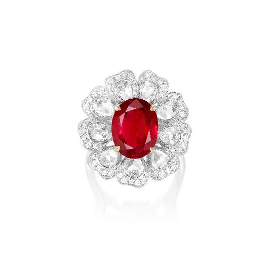 Adored and revered in many cultures throughout centuries, rubies are often associated with power, wealth, success and health. Ruby is not only known as the ‘King of Gemstones (ratnaraj)’, but also the ‘Gemstone of Kings’. Highlighting this season is a selection of the finest natural rubies sourced from Burma, now Myanmar, a source of the gems since 600 A.D. It is worth noting that Burma is yielding fewer and fewer rubies in recent decades, even more scarce are rubies from the region that are of significant size like the present 4.00-carat Burmese unheated ruby and diamond ring offered in this season’s sale. Any exceptional unheated specimens command unfathomable per carat prices at international auctions in the past five years, only surpassed by coloured diamonds.