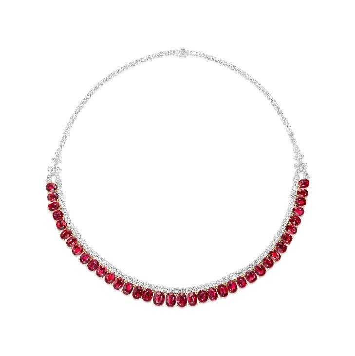A Burmese Unheated Ruby and Diamond Necklace, rubies weighing 40.35 carats in total