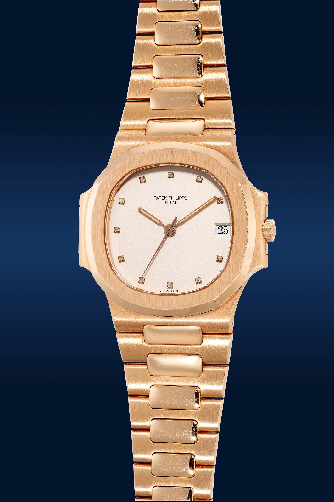 Coming to auction for the first time, the present Patek Philippe Nautilus ref. 3800/1 in pink gold (illustrated page 1) is the fourth example of ref. 3800 in pink gold to appear in the auction market. Incredibly rare, it is the second example in the market to bear ‘cream dial’ with diamond markers configuration. Alongside the present example is a special letter carrying the logo of Patek Philippe Geneva and addressed in German in August 1990. An exceptional piece of documentation, the letter was signed by the manager of the Patek Philippe shop and mentioning up until date, only 10 examples were made for the ref. 3800/1 in pink gold and were all sold exclusively through the salon in Geneva. Besides the letter, the present example is accompanied by a Certificate of Origin, presentation box, and Patek Philippe Extract from the Archives confirming its date of manufacture in 1990.