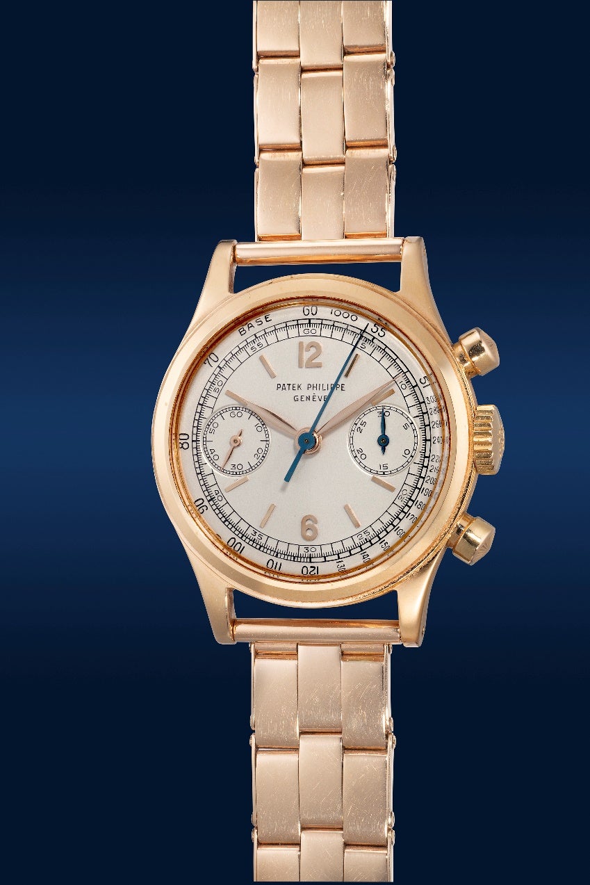 Launched in 1937, Patek Philippe’s ref. 530 remains one of the rarest and largest vintage chronograph models manufactured by the firm. Only a handful of chronograph ref. 530 are known to exist, with literature suggesting that approximately 30 were made in pink gold. Boasting a large 36.5mm case diameter, it was very unusual for a vintage Patek Philippe and the concave bezel makes it a very attractive timepiece even in modern days.