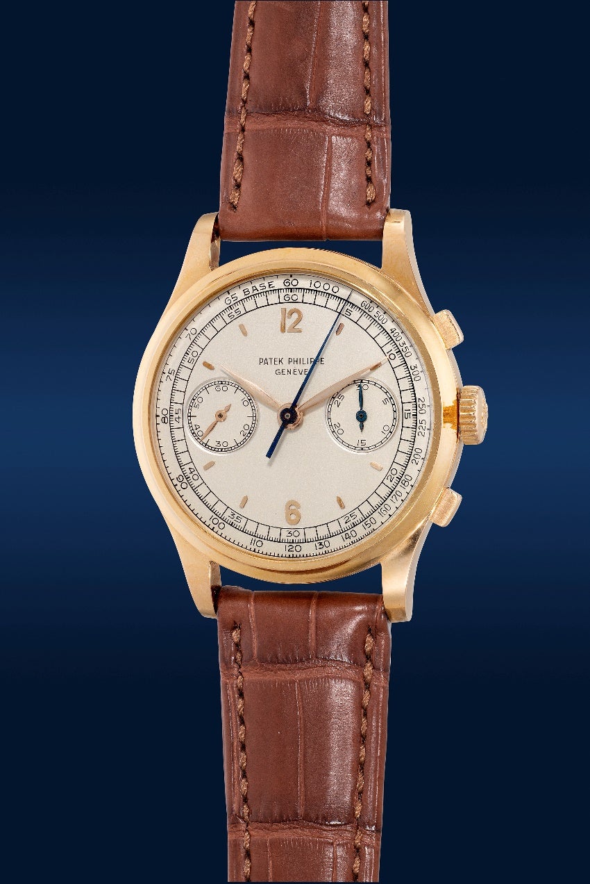 Patek Philippe ref. 1463, known to collectors as the “Tasti Tondi” (round pushers), was first introduced to the market in 1940 and distinguished itself from previous chronographs made by the maison. Chronographs by Patek Philippe prior to the introduction of ref. 1463 were made with snap-on casebacks and square pushers, whereas ref. 1463 was made with a screw down caseback and round pushers.