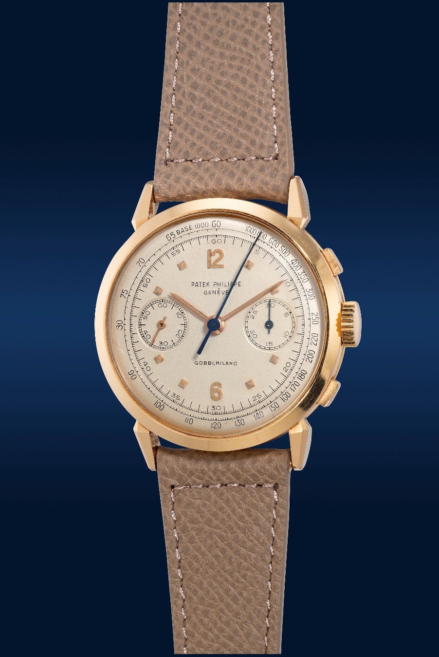 The present example is exceptionally well-preserved, of particular note is the signature of the renowned Italian retailer, Gobbi, Milano, which remains beautifully crisp on the dial. It is one of only nine pink gold ref. 1579 to feature the Gobbi signature on the dial. This watch is accompanied with a comprehensive set of accessories including the certificates of origin from both Patek Philippe and Gobbi, Milano, which further enhances the collectability of the timepiece.