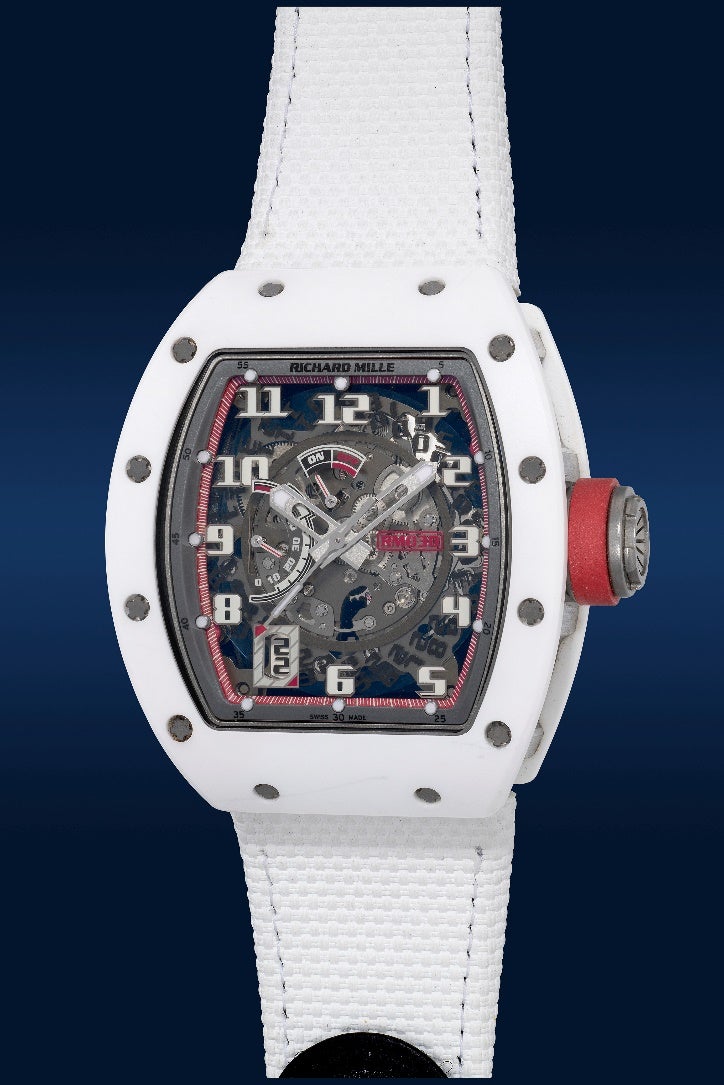Coming to the auction market for the first time, the current iteration of the present RM030 is a limited edition of only 50 pieces created specifically for the Japanese market. Featuring a robust ATZ ceramic case made from aluminum oxide powder tubes, it was injected at a pressure of a whopping 2,000 bar. With the rigidity increased through the process, it is one of the hardest materials in the world. Notably, ATZ ceramic is highly hypoallergenic and exhibits exceptional resistance to scratches, shocks, and abrasion, making it an ideal material for a watch case.