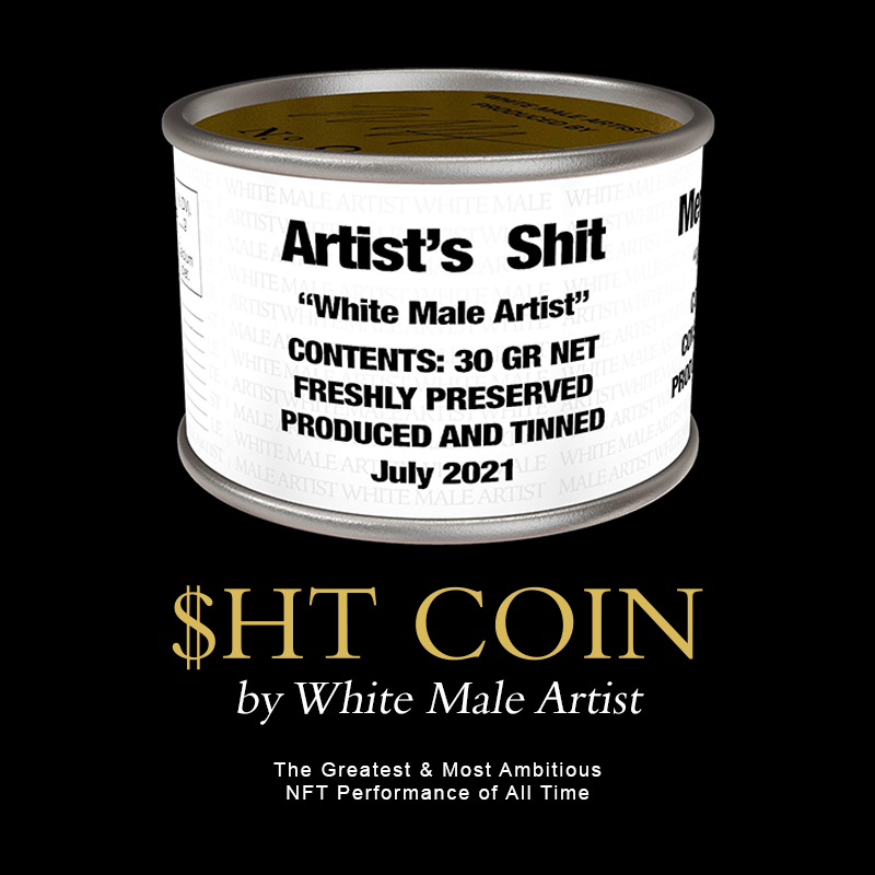 $HT Coin directly refers to the Italian conceptual artist Piero Manzoni and his most famous piece, Merda D'Artista (Artist’s Shit), 1961. White Male Artist has taken his inspiration from Manzoni, who is best known for his ironic approach to avant-garde art and his work is widely seen as a critique of mass production and consumerism. Manzoni is famous for saying, “If collectors want something intimate, really personal to the artist, there's the artist's own sh*t, that is really his.”