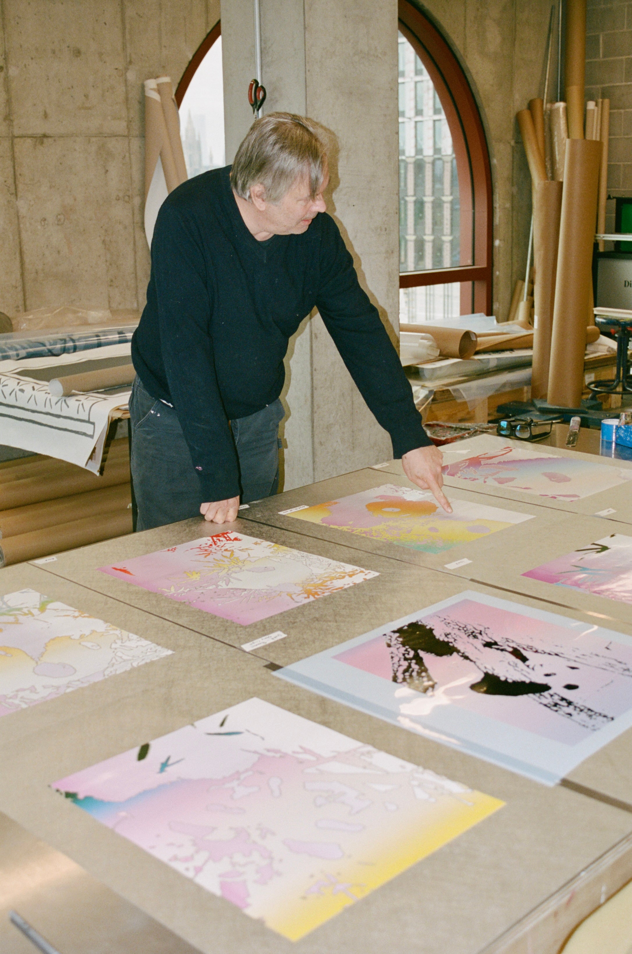 Rob Pruitt proofing Hoarfrost Pandas at Powerhouse Arts, 2024