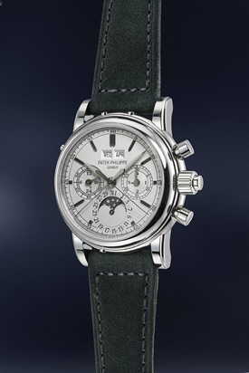 Further impressive timepieces include a series of automatic perpetual calendar wristwatches, such as a reference 3448 in white gold with light grey dial and original bracelet (CHF200,000 - 400,000).