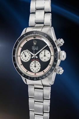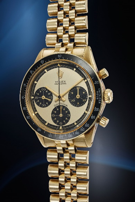 A superlative selection of exceptionally rare and coveted Rolex Daytona Cosmograph models with Paul Newman dial will be features. A leading highlight is the Reference 6264 from 1969 in yellow gold “Lemon”. Paul Newman models in gold are extremely rare but ones with the renowned “Lemon” dial featuring a yellow gerné dial, black subdials and white graphics are considered by collectors as true grails, both in terms of collectability and beauty.