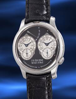 Since its introduction in 2000, the Chronomètre à Résonance has become an iconic timepiece in contemporary horology, inspired by Antide Janvier's resonance phenomenon. François-Paul Journe's quest culminated in the first wristwatch utilizing this effect, featuring two independent balance wheels for enhanced accuracy. The second generation, RN series, launched in 2004, includes this 40mm model with an 18K pink gold movement and exclusive Black Label dial. Discontinued in 2009, this Chronomètre à Résonance Black Label is the 5th example to appear in the market. Preserved in excellent condition and complete with its full set of accessories, this represents an uber rare iteration of one of the most significant horological breakthroughs in recent decades