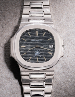 Another standout is ref. 3700 Nautilus, bearing a prominent Khanjar emblem at six o'clock, representing one of only four known in stainless steel. Timepieces bearing the Omani "Khanjar" emblem were specially commissioned by Sultan Qaboos bin Said Al Said and given as prestigious gifts to his closest dignitaries and officials. Receiving such a watch was a high honour, and these timepieces are now cherished heirlooms, passed down through generations. The present example is in exceptional condition and is the only one confirmed by Patek Philippe Extract from the Archives with a Coat of Arms on the dial. Its rarity and historical significance make it one of the most collectible reference 3700 to appear on the market in recent years.