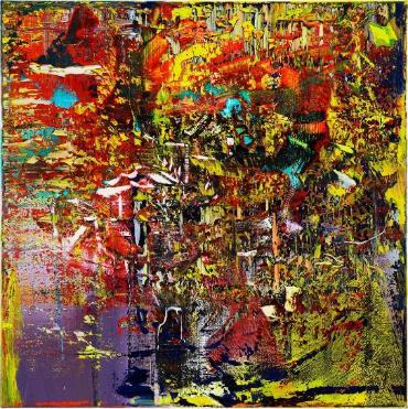 acrylic and oil stick on canvas on wood supports, 183.2 x 182.2 cm.