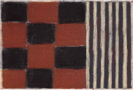 Sean Scully’s Untitled, 1991, marks a pivotal moment in the artist’s career, merging the stripes of his 1980s works with the checkerboard patterns that defined his early 1990s paintings. United by the soft blending of pastel colors, the composition juxtaposes vertical stripes with a red and black grid, creating a dynamic visual rhythm. Scully saw the checkerboard as a breakthrough, forcing him to paint “without direction,” unlike the structured nature of stripes. The work’s geometric forms are softened by gestural brushwork, capturing the tension between order and chaos. Influenced by Mexican architecture and Irish stone walls, Scully’s use of “bricks” evokes the passage of time, while his tonal palette reflects deeper emotional truths.