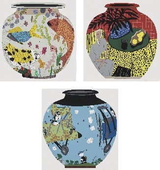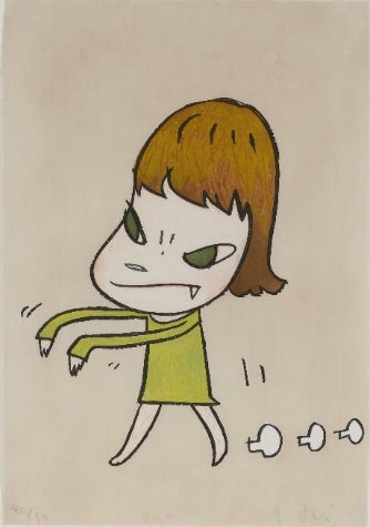 Further sale highlights include Yoshitomo Nara’s Walk On (M. & S. E-2010-012), a Ukiyo-e woodcut which depicts Nara’s iconic little girl with almond shaped eyes and a menacing smile set in a hard straight line. Yayoi Kusama’s Pumpkin (White Y) (K. 150) brings together three of Kusama’s most recognisable motifs: a pumpkin, dots, and infinity nets. Additional works on offer include Jonas Wood’s Fish Pot; Matisse Pot 4; and Snoopy Pot. Wood’s incorporation of ceramic vessels into his body of work stems from his collaborative working relationship with his wife, the ceramic artist Shio Kusaka.