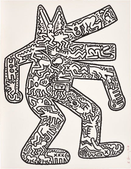 Leading the Editions section is Keith Haring’s Dog (L. pp. 48-49) from 1986-87, featuring his celebrated barking dog motif which originated in the artist’s New York subway drawings of the early 1980s. Another standout highlight by Pop Art pioneers is Andy Warhol’s iconic Shoes (F. & S. II.257), from 1980 with diamond dust, which epitomizes his fascination with glamour and celebrity. Also on offer is Damien Hirst’s complete set of The Virtues (H9), which is inspired by Bushidō, the Japanese samurai code of ethics.