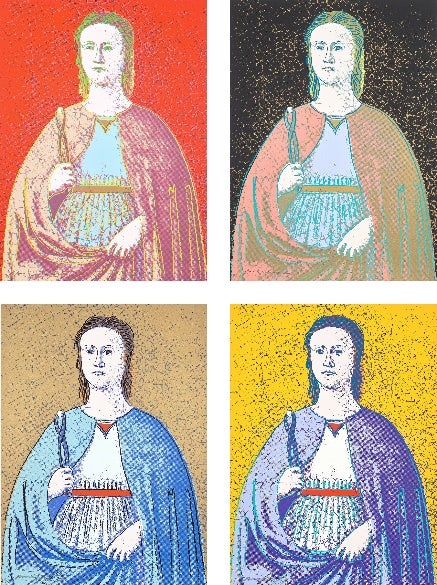 The sale features 19 works by Andy Warhol, including Saint Apollonia. Inspired by a 15th-century painting attributed to Piero della Francesca, Warhol’s depiction retains much of the original’s detail, including the cracked tempera and gold leaf, while transforming the religious icon into a Pop aesthetic exploration of commodification and originality. Part of his broader engagement with Renaissance art in the 1980s, Saint Apollonia aligns with Warhol’s Details of Renaissance Paintings series, where he likened the cultural prominence of classical masterpieces to modern celebrity. Further Warhol highlights include his celebrated depictions of advertisements.