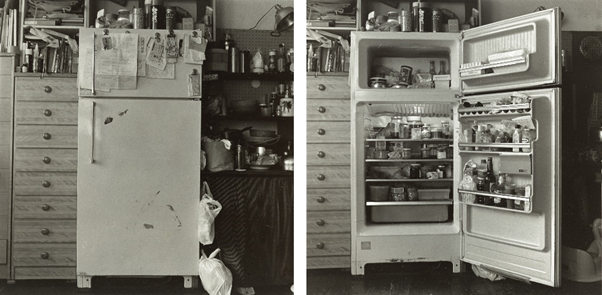 For her ongoing ICE BOX series, Tokuko Ushioda has photographed refrigerators, shut and open, since 1981, starting with her own as seen in this early diptych on offer in ULTIMATE. A deeply personal portrait, Ushioda showcases her refrigerator, the exterior and its contents, as this common household item takes on a life of its own, providing a portal to her family’s domestic landscape.
