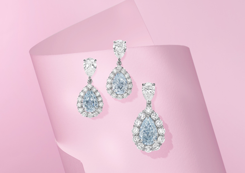 A Pair of 1.12 and 1.13 carat Fancy Blue Diamond and Diamond Earrings Estimate: HK$4,000,000 - 6,000,000/ US$500,000 – 780,000 |