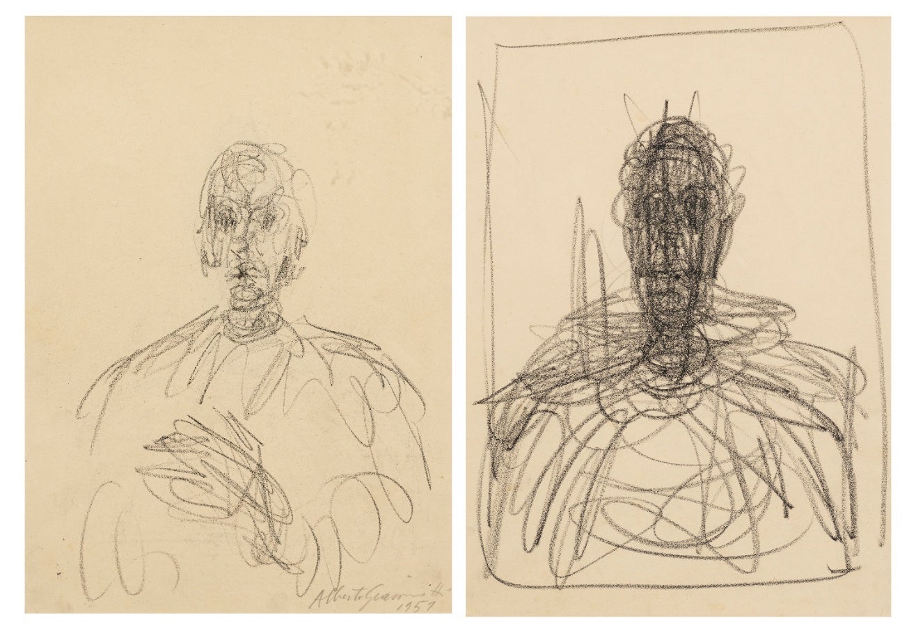 A highlight of the exhibition is Alberto Giacometti’s Buste d’homme le bras gauche levé (recto) / Buste d’homme dans un cadre (verso). Executed in 1951, this double portrait demonstrates Giacometti’s commitment to exploring the representation of his subjects across different disciplines. His drawings, which were particularly prolific at this later period of his career, capture a particular transience. As with Giacometti’s acclaimed slender sculptural forms, the subjects of this work is drawn with thin, fluent lines which suggest a dreamlike sense of fleeting weightlessness.