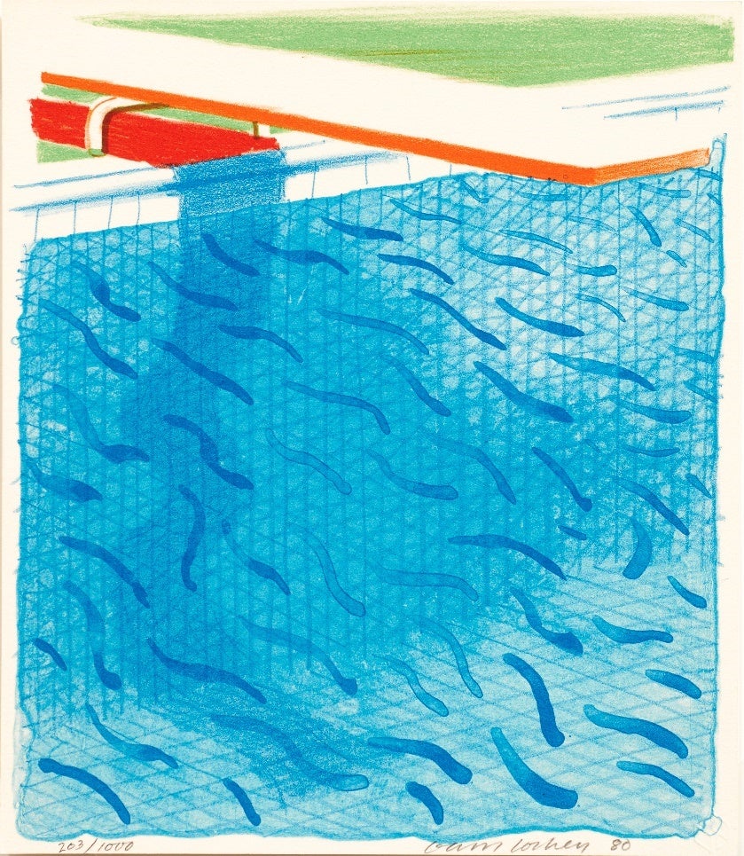 David Hockney Pool Made with Paper and Blue Ink for Book Estimate: $25,000 - 35,000