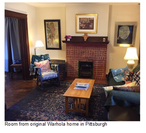 Living Room Featured alongside Nosepicker I is another early work from the same year that offers the view a peek into Warhol’s early life and perspective of a youth growing up with his Carpatho-Rusyn emigrant parents and siblings in a small two-bedroom house at 3252 Dawson Street in Pittsburgh.
