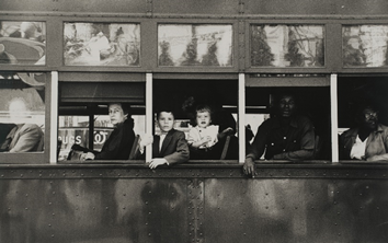 Robert Frank’s Trolley – New Orleans is the definitive work from his seminal series, The Americans. Beginning in 1955, Frank made several cross-country trips funded by a succession of modest Guggenheim grants to photograph America. What Frank saw on his travels was a country enjoying post-war prosperity but deeply riven by racial and class divisions. Nowhere in Frank’s work are these divisions more apparent than in Trolley—New Orleans, which was chosen as the cover illustration for the first American edition of The Americans in 1959. The print offered here is distinguished by its large format, high level of detail, and for its direct line of provenance, having been acquired from Frank by the present owner around 1980.