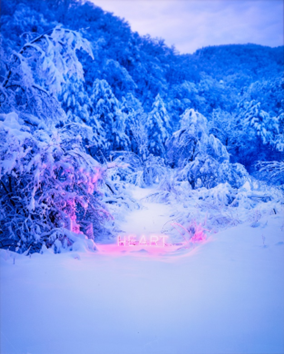 Jung Lee explores the power of words through her text-based neon installations set in natural landscapes; sculptural pieces featuring thought-provoking words or phrases that provide striking contrast to their setting of stark plains or snow fields. The artist’s work has been exhibited at the Seoul Museum of Art, and her work resides in the prestigious Burger Collection, Hong Kong. Notable collaborations include the album cover for Maroon 5’s V in 2014 and a neon installation for the launch of Yves Saint Laurent’s flagship store in Seoul in 2021.