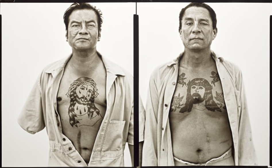 Leading the sale this May and offered at auction for the first time is Richard Avedon’s striking, monumental diptych Jesus Cervantes and Manuel Heredia, prisoners of Bexar County Jail, San Antonio, Texas. From 1979 to 1984, Avedon photographed extensively for a commission from the Amon Carter Museum of American Art, culminating in the seminal exhibition and book In the American West. He travelled all over America and photographed 752 people, deliberately seeking out and photographing individuals who have historically been overlooked by society. When speaking with inmates at Bexar County Jail, Avedon found that many of them, including the featured subjects, Jesus Cervantes and Manuel Heredia, had religious tattoos. Symbols of faith, culture, and tradition, the religious tattoos on full display render this larger than life-sized diptych striking not only for the context of Cervantes’ and Heredia’s lives, but also because Avedon has portrayed them against his signature white backdrop, transforming them into symbolic figures.