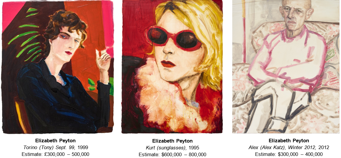 Appearing publicly for the first time, Peyton’s 1995 masterpiece Kurt (sunglasses) is a leading highlight of the Modern & Contemporary Art Evening Sale in New York. Taking inspiration from Alice Wheeler’s photograph of Kurt Cobain and painted shortly after Cobain’s death, the work reflects Peyton’s fascination with fame, blending public persona with personal fragility. This portrait marked a pivotal moment in Peyton’s career, where she captured the spirit at the turn of the 20th century through her depiction of popular figures, drawing on ‘lives that are played out in the public arena of the mass media.’ Peyton’s portrait of a fellow portraitist, Alex (Alex Katz), Winter 2012 belongs to a rich tradition of artists painting other artists and is a highlight of the Modern & Contemporary Art Day Sale in New York.